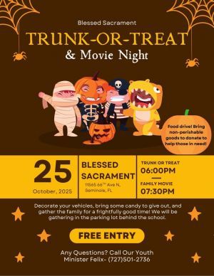 Our annual trunk or treat is approaching, we will have a DJ, food truck, games, candy and don’t forget about ...