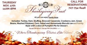 Gather your family and friends and celebrate Thanksgiving Prohibition-style! Enjoy an all-you-can-enjoy Family Style Feast featuring: Turkey, Ham, Stuffing, Broccoli Casserole, Cranberry ...