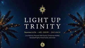 “Light Up Trinity” is a lively, family fun community event. You can take pictures with Santa, walk through a live ...