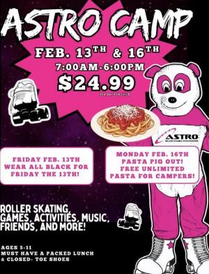 School’s Out = Astro Camp is in! A full day of skating, games, music, friends, and nonstop fun! Drop the kids ...