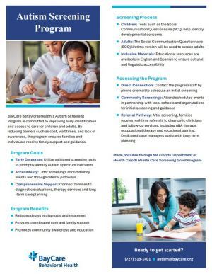 We’re excited to partner with BayCare to offer a free autism screening for families in our community. Families who come in ...
